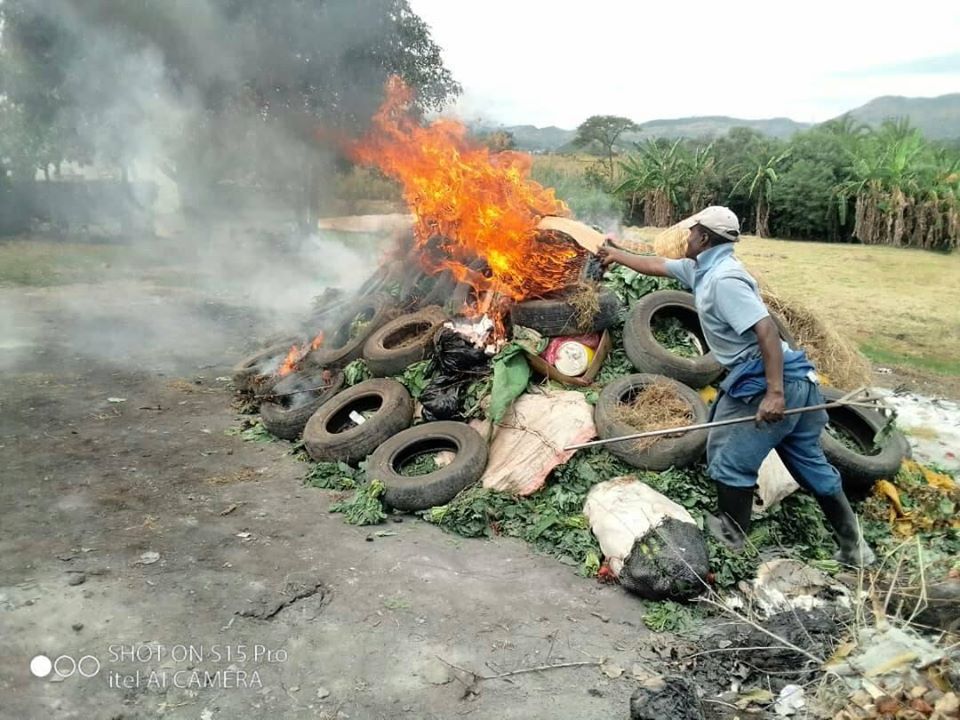 Zimbabwe Republic police last night burnt stocks belonging to vendors who broke the lockdown rules.