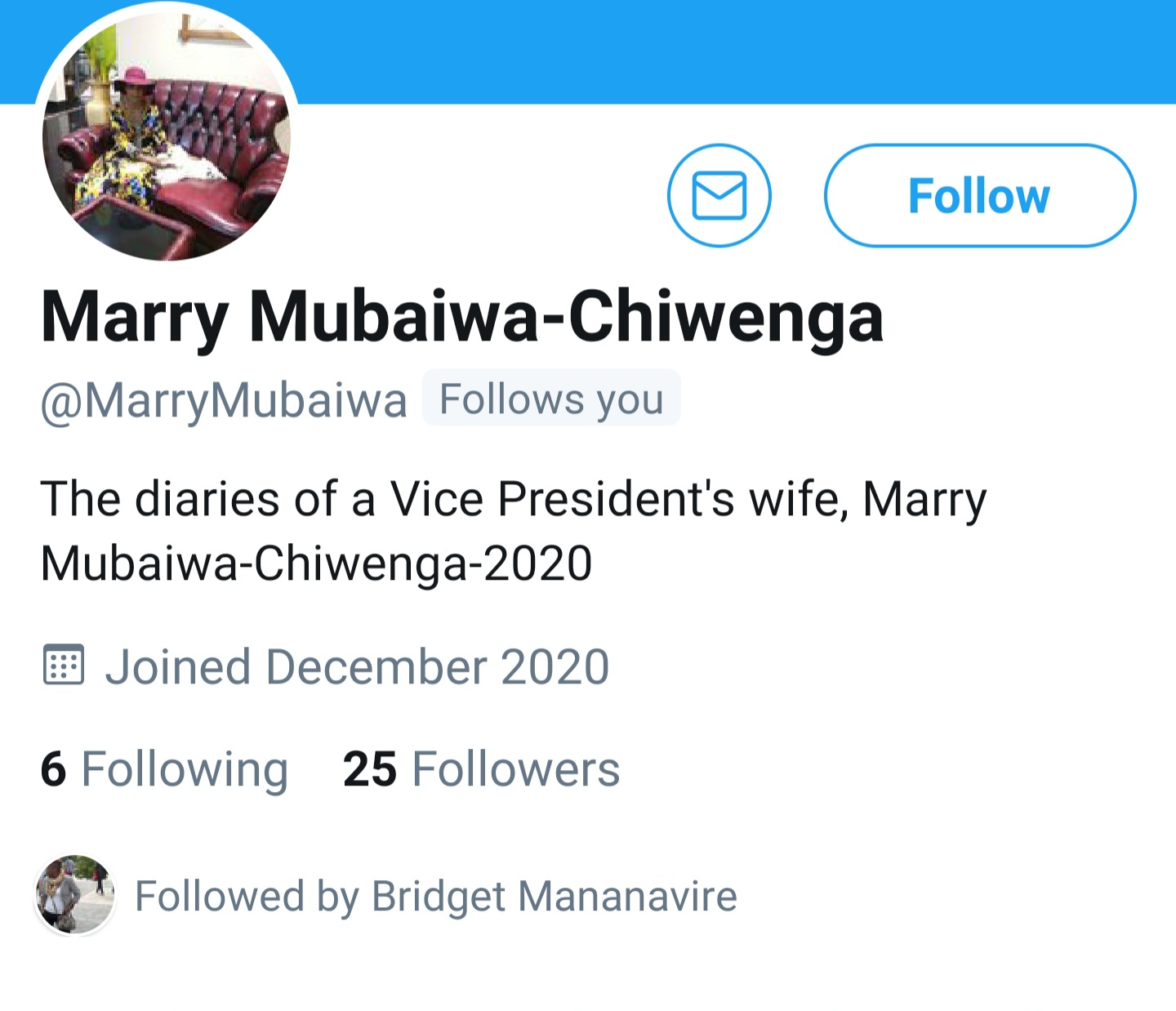 Marry Mubaiwa told The News Hawks that she set up the account this afternoon to enable her to share her daily struggles and thoughts with the world.