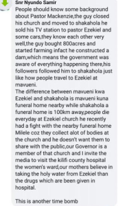 In 2019, his Church in Malindi was shut down over the same controversial teachings… So, he moved further to the interior of Malindi, to Kilifi and set up… and even more people joined him, some coming from as far as Western Kenya.