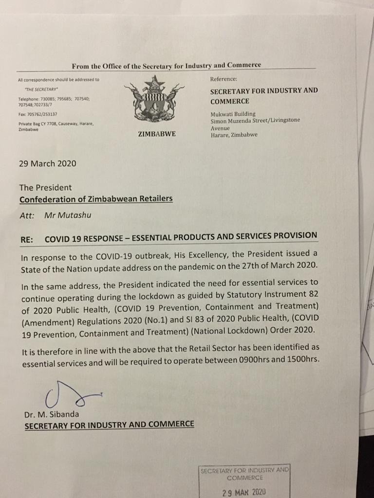 In the same address, the President indicated the need for essential services to continue operating during the lockdown as guided by Statutory Instrument 82 of 2020 Public Health, (COVID 19 Prevention, Containment and Treatment) (Amendment) Regulations 2020 (No.1) and SI 83 of 2020 Public Health, (COVID 19 Prevention, Containment and Treatment) (National Lockdown) Order 2020.