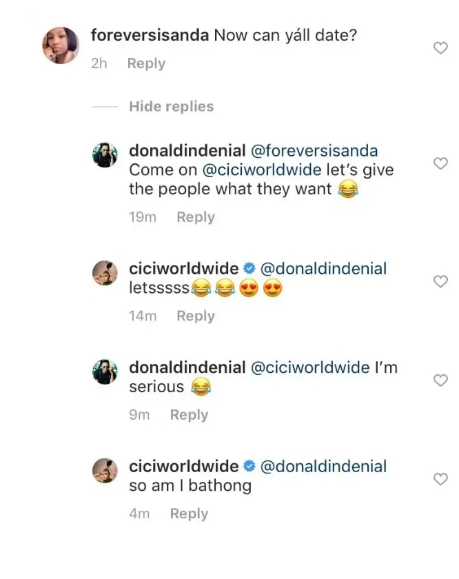 Donald and Cici might have made their relationship official when a fan asked, “Now can y’all date?” Check their response below