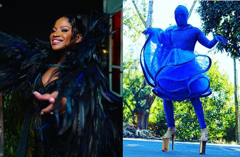 The media personality channeled an alien look and was carried into the venue by men holding him up in a makeshift alien cage. Shortly after this, he started his multiple outfit changes, at one point twinning with his daughter Bahumi Mhlongo.