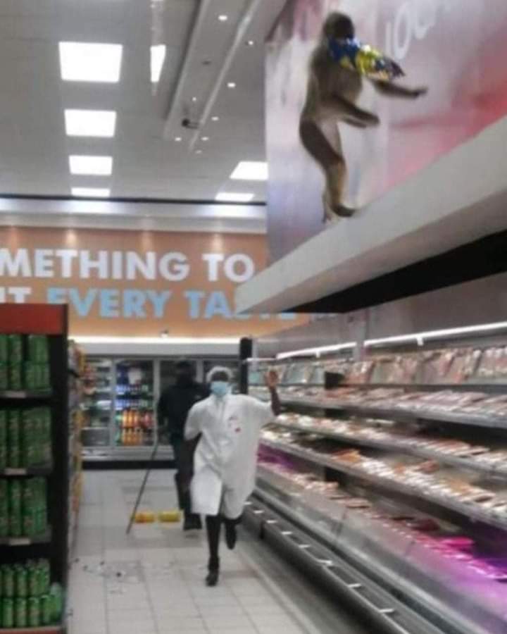 Customers were left in awe as a baboon entered a supermarket and stole a bag of chips. The incident leaves a lot of people with tons of unanswered questions. Panic made other customers flee the sight.