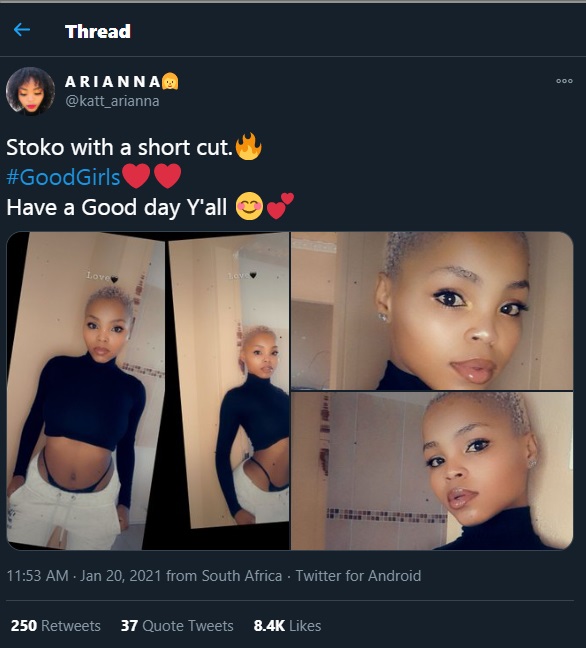 One of the Stoko girls Arianna saw herself trending after she got a backlash from Twitter. Arianna backlash comes in the wake of a series of posts she made showing off her new hairstyle.