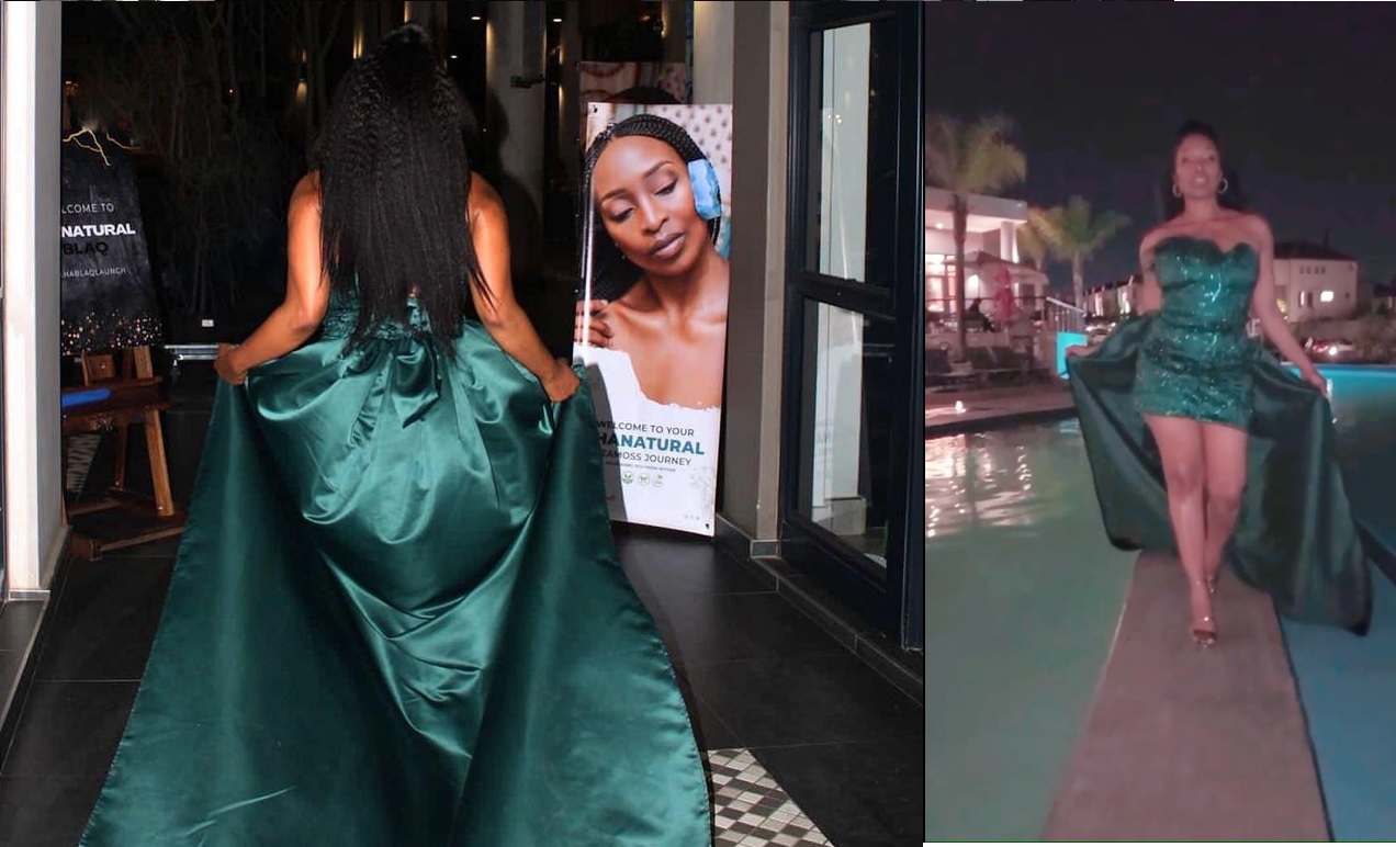 Khabonina wore a green dress with sequence and a small tinted green trail for the night to heighten the presence of the green ingredient. As much as Khabonina is an entrepreneur, she is also an actress and a choreographer. For entertainment, she hired two exotic male dancers who dazzled the ladies in the audience. They also helped her apply some of the products to her skin. A choreographer will always want to infuse elements of dance in everything she does.