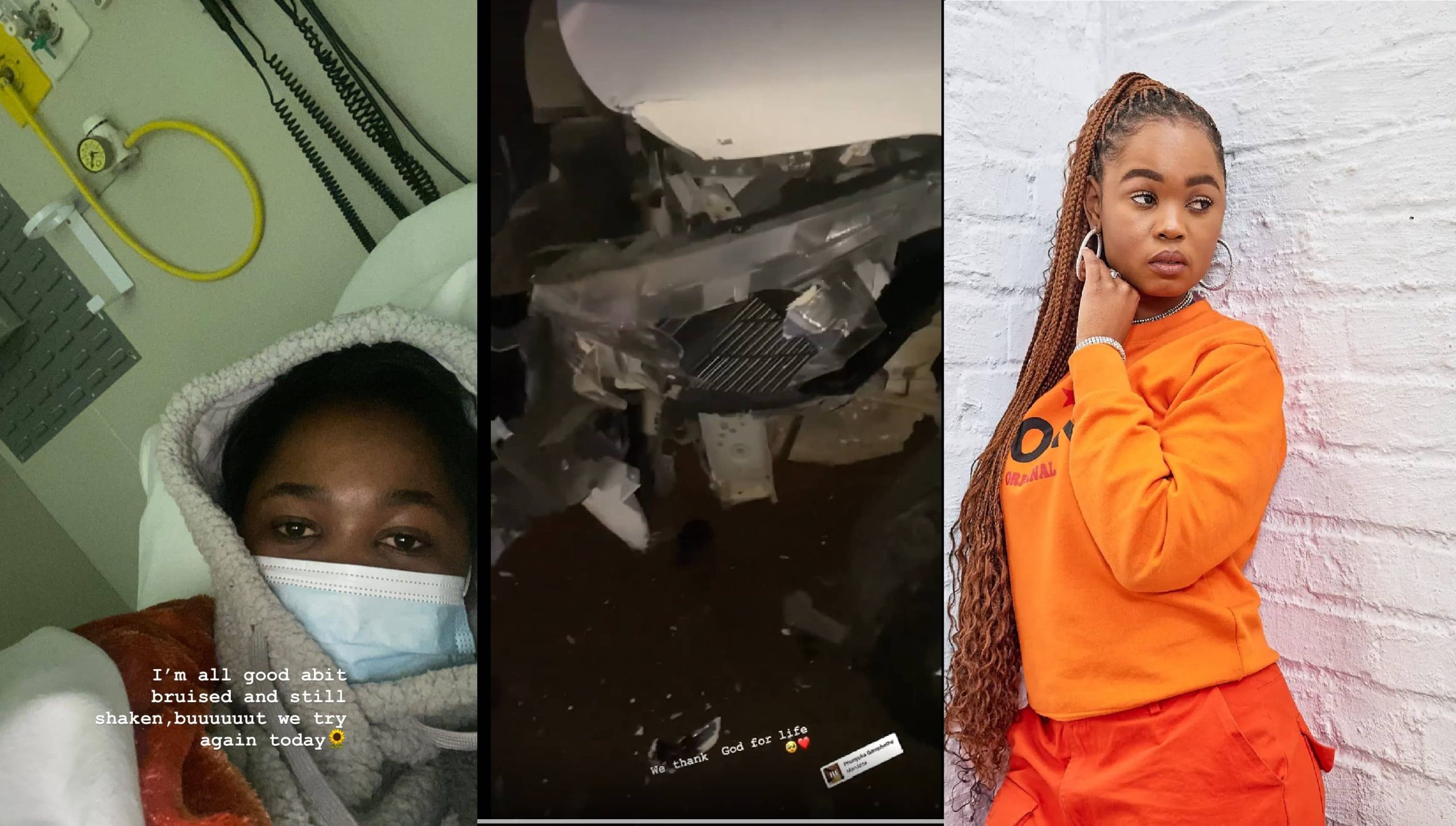 She took to Instagram to post that she was good despite the accident. Kamo admitted the accident had her shook. She also spoke about her injuries, saying she had bruises from the crash. From the image she posted of herself on a hospital bed, we can see her face is clean.