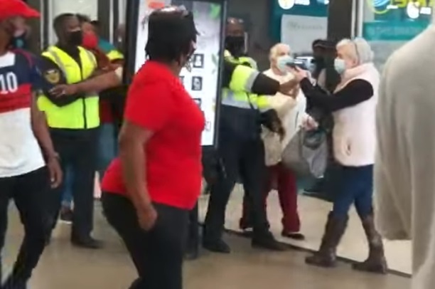 A white elderly woman pulled out her gun after being intimidated by protesting EFF members in Walmer Park, Port Elizabeth. See the video below. The elderly lady was refused entrance to Clicks store by the Economic Freedom Fighters