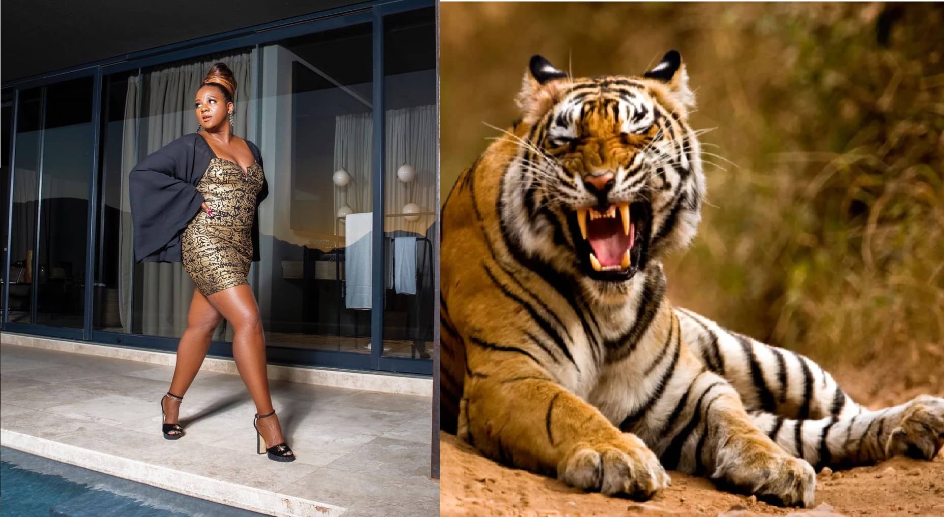 Shauwn Mkhize wanted to test how fearless she is by visiting a wildlife reserve. She spent some time outside the cage of a white tiger called Ziggy. She got too close to the tiger, scaring her sister Nozipho