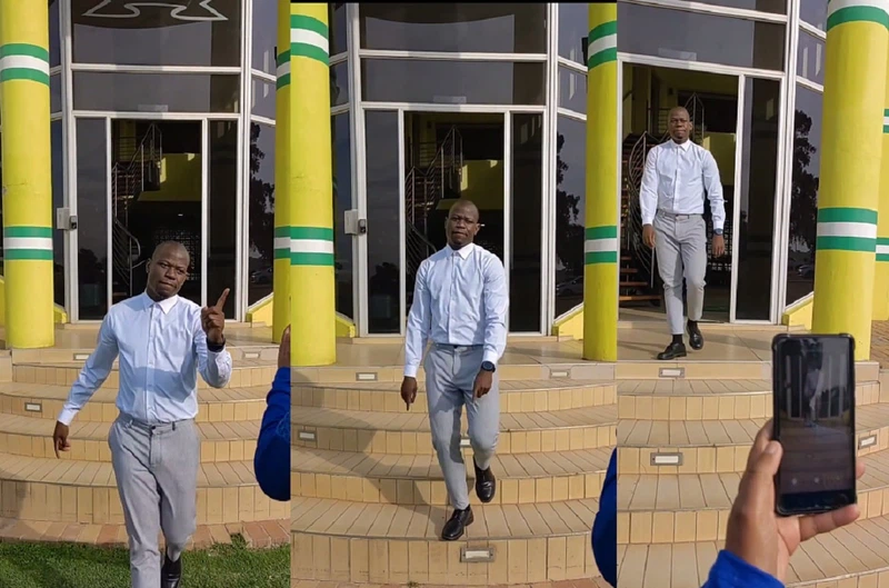 He was coming out of the offices when he started modelling with a big smile. Kekana went down the stairs, and some people around were already on the ground laughing. As if that was not enough, he returned up the stairs and started modelling again.