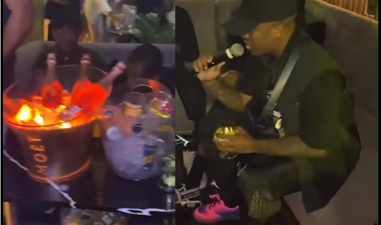 On the table, there were so many bottles of alcohol. We know he doesn’t go clubbing without spending on expensive liquor bottles. There were beer bottles, champagne bottles in the brand aces and vodka bottles. Mr AM was sitting by that table with a microphone, and some of the people he was performing for were dancing.