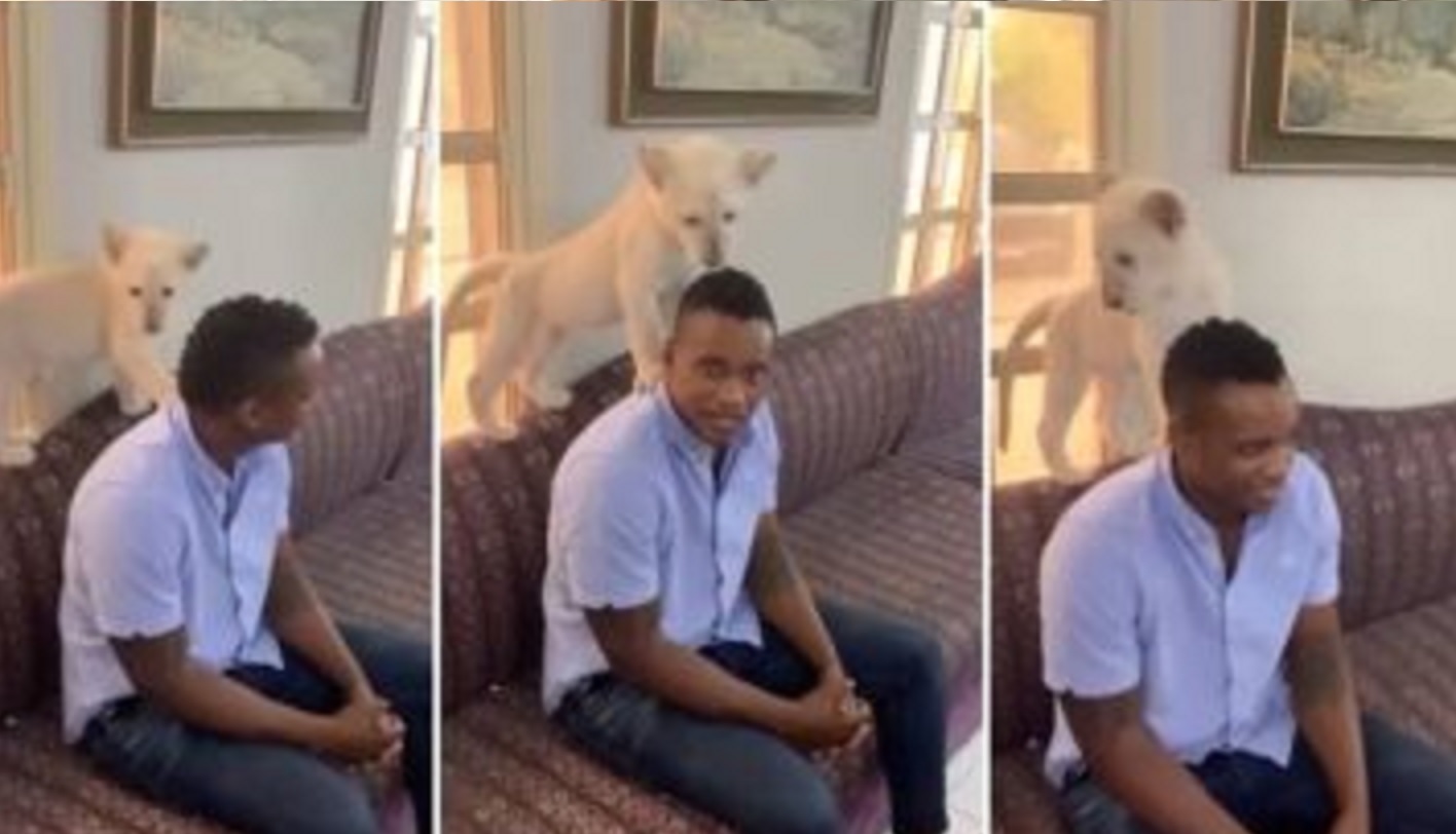 In the viral video, Duduzane was chilling with a rare white lion cub. Duduzane was sitting on a couch, and the cub wad perched on the backrest. He showed his bravery when the cub climbed on Duduzane’s shoulders.