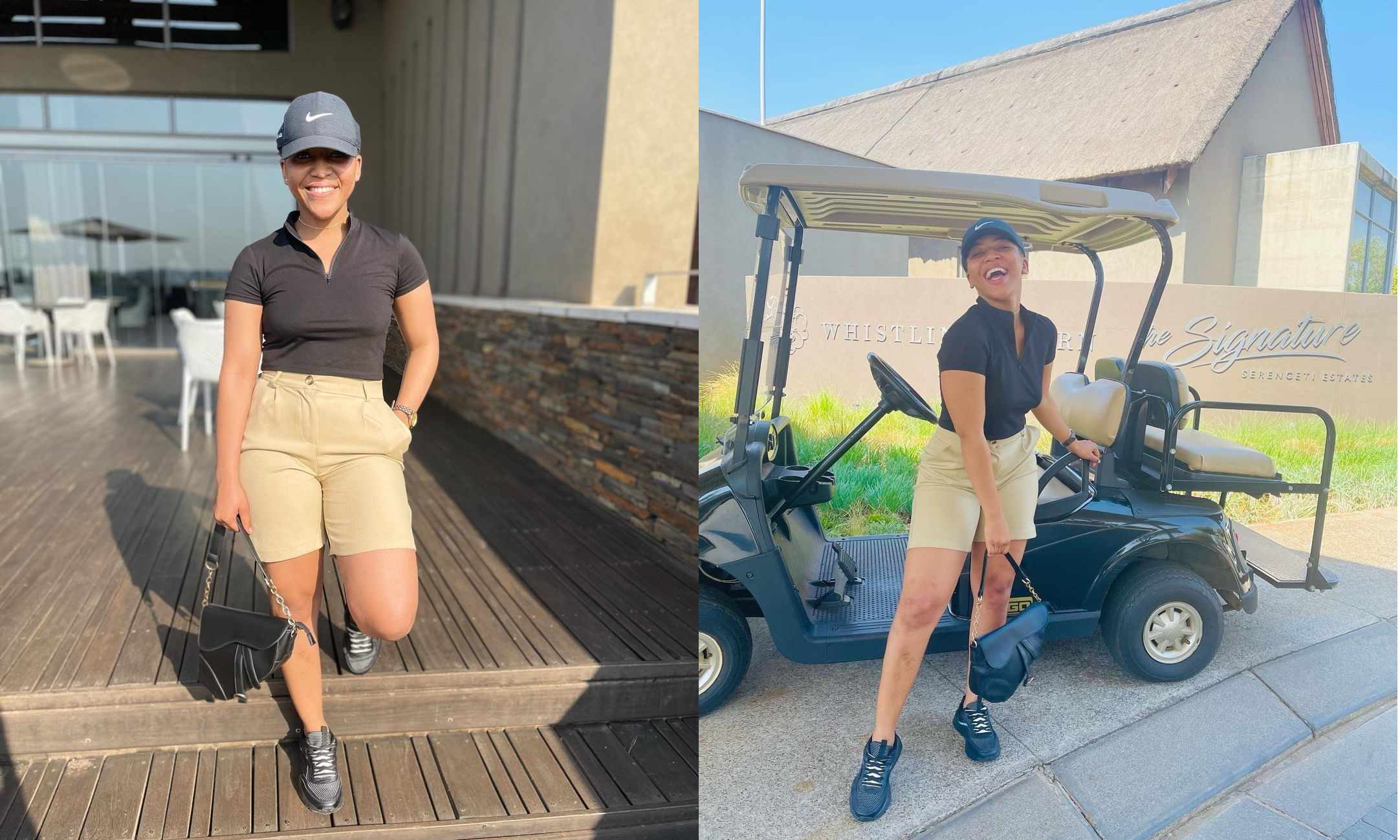 The actress was pictured standing in front of a golf car in a recent Instagram post, which suggests she visited a posh hotel with a golf course. She appeared to be there to play golf, so she dressed appropriately. She looked stunning in an outfit that complemented the scene. She wore brown shorts, black sneakers, a golf shirt, and expensive sneakers to complete the look.